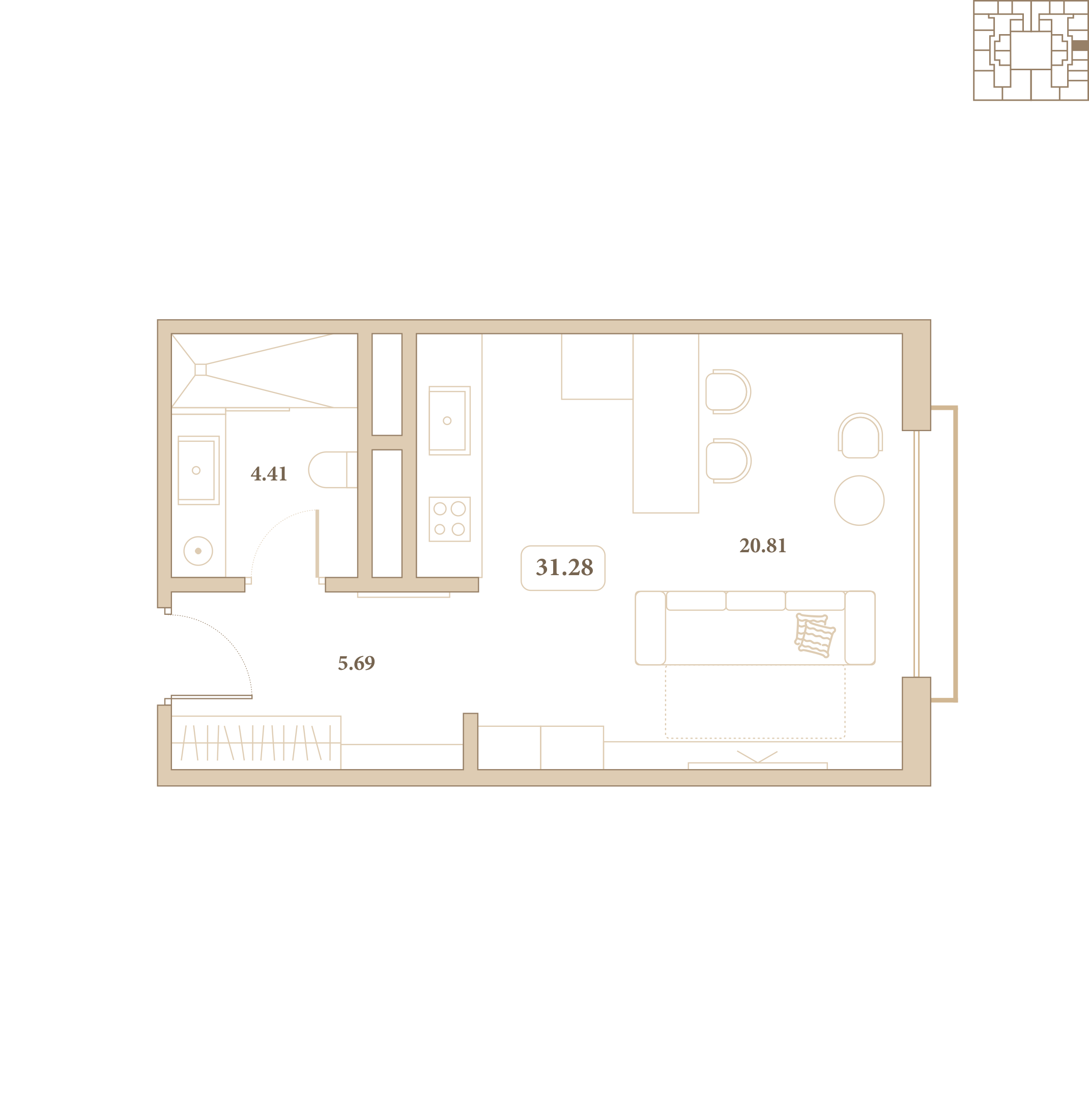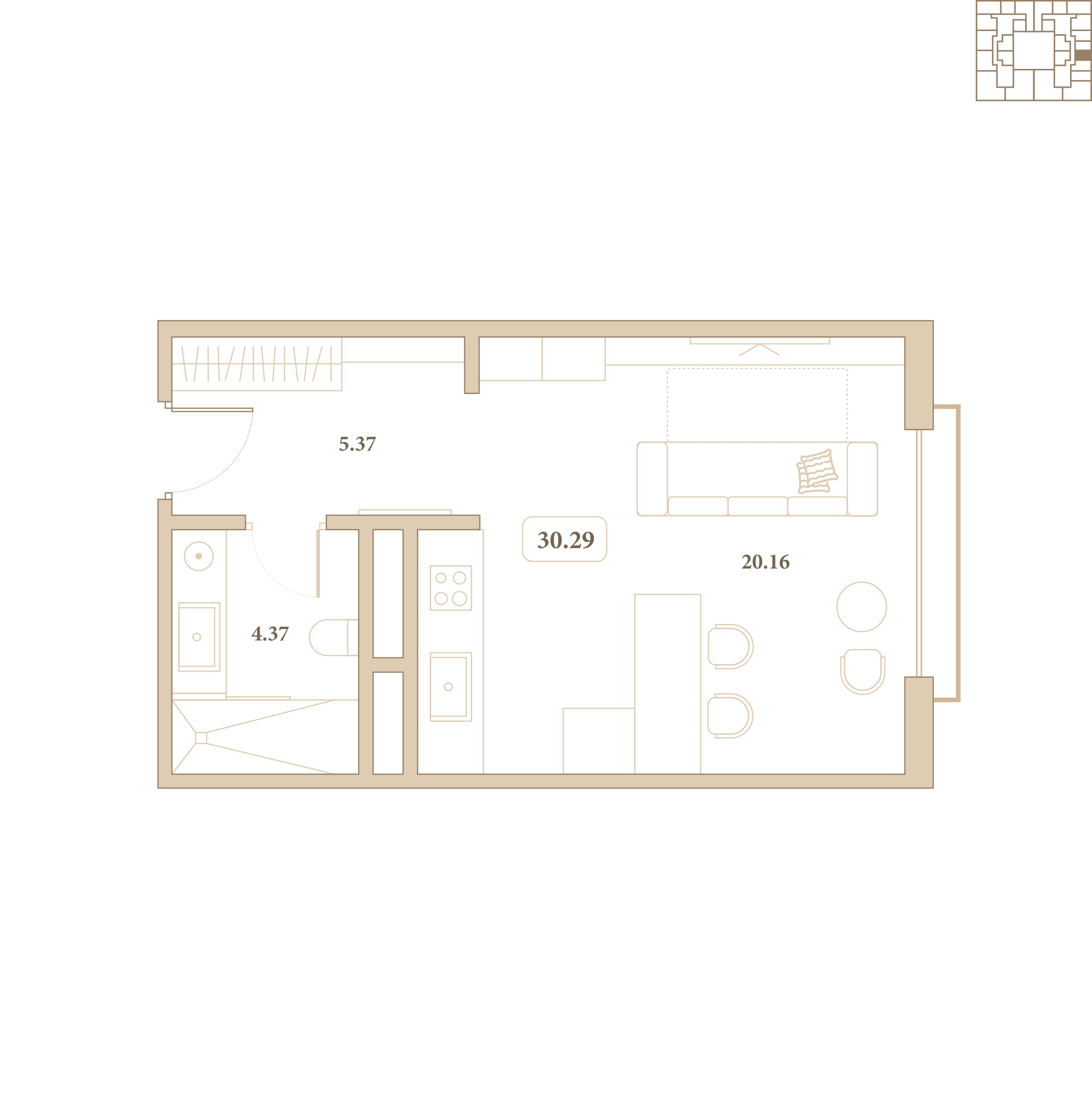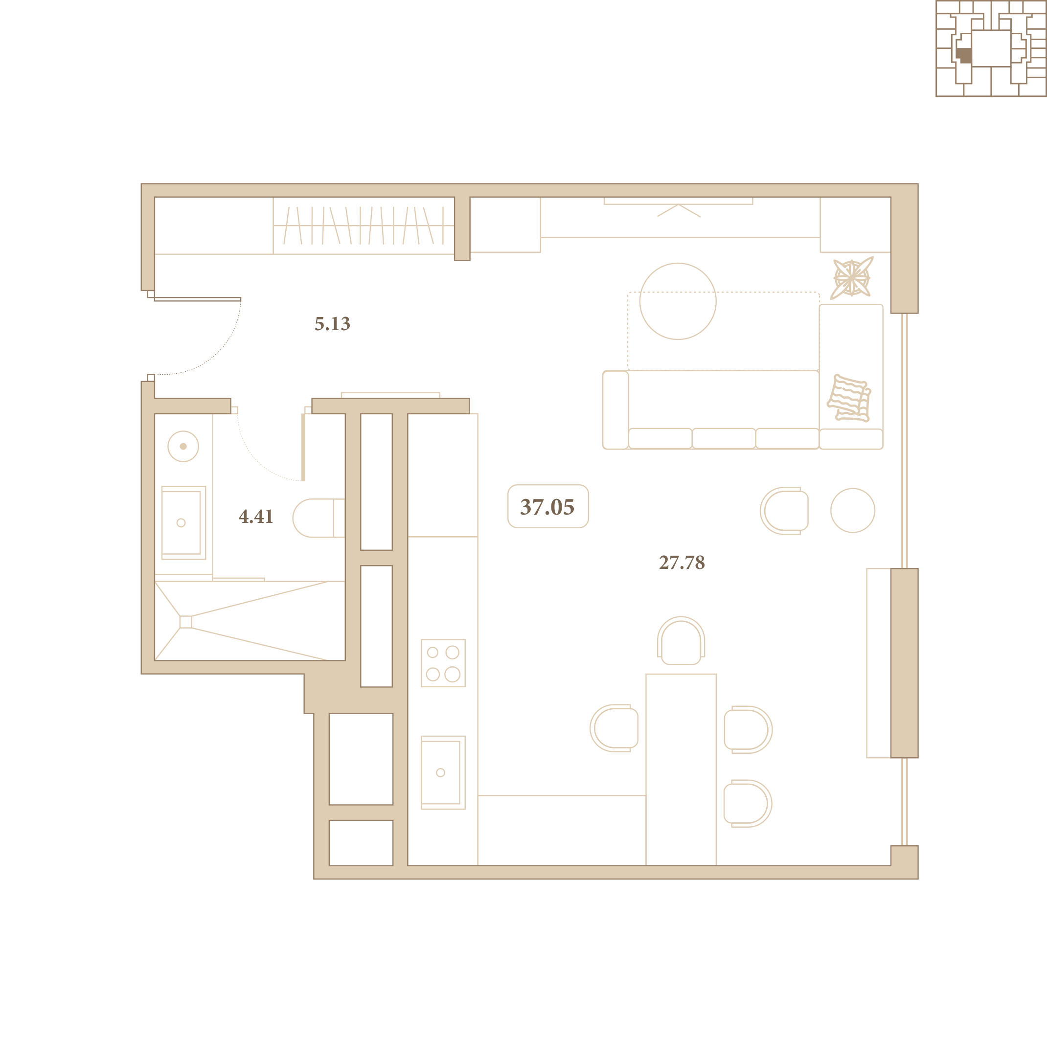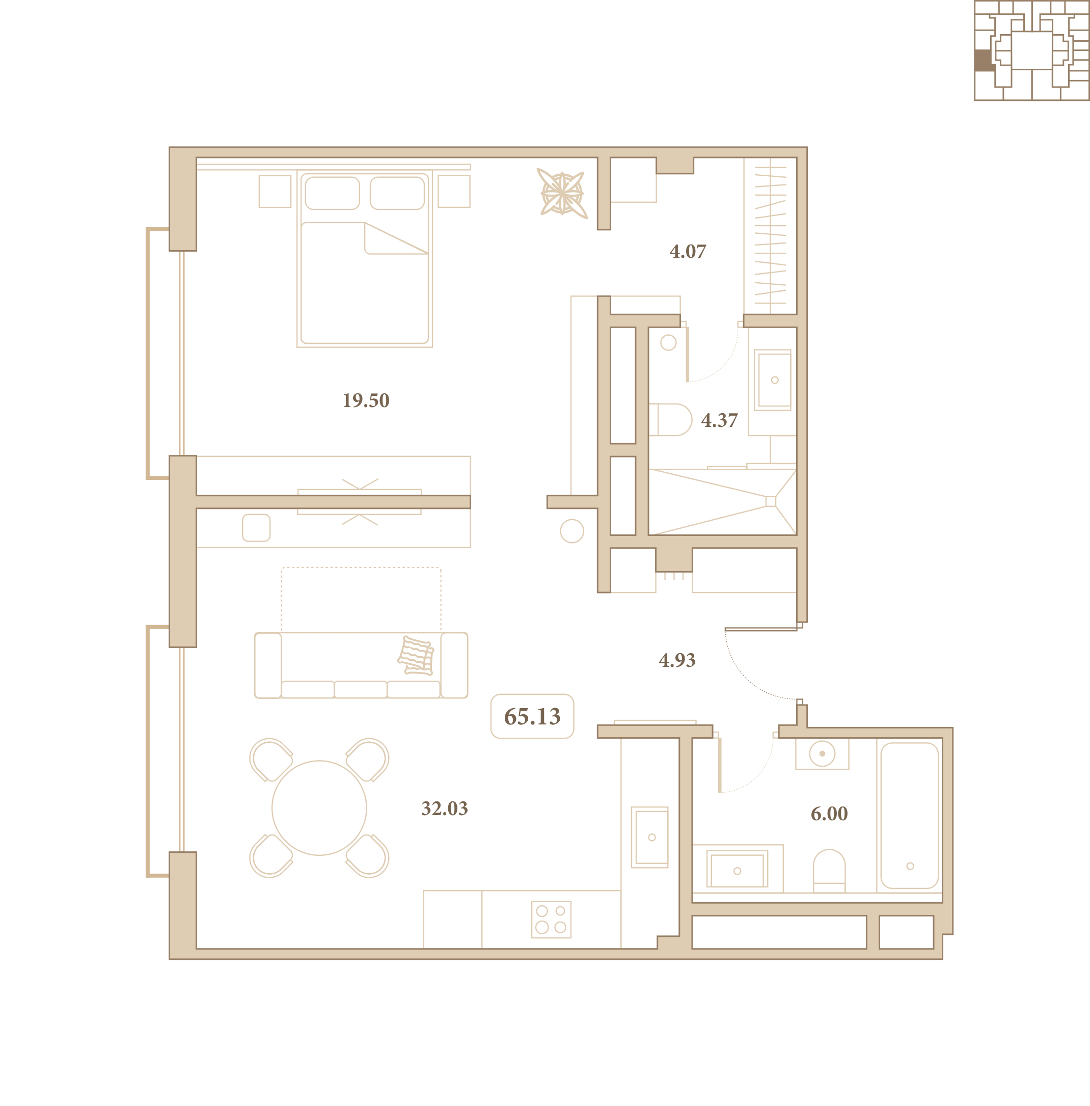Отделка выполнена из высококачественных материалов, а каждый элемент интерьера подчёркивает стиль и гармонию пространства. Из окон открываются живописные виды на благоустроенный внутренний двор комплекса.
