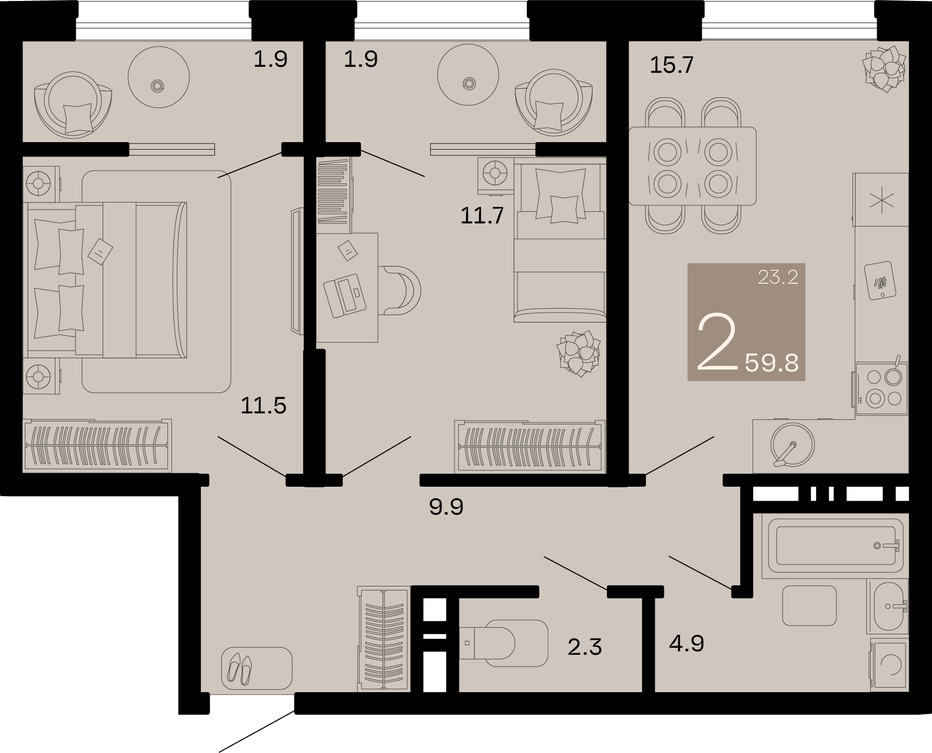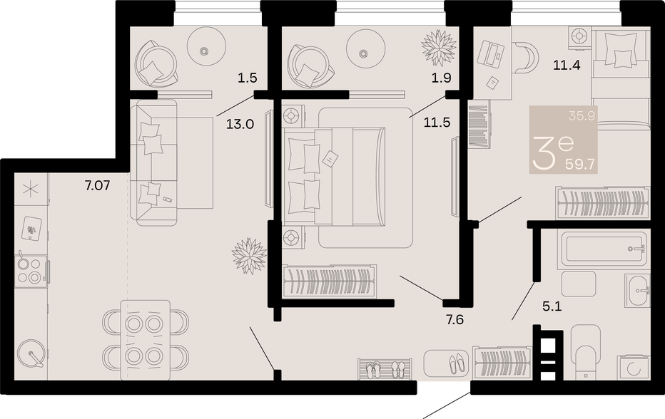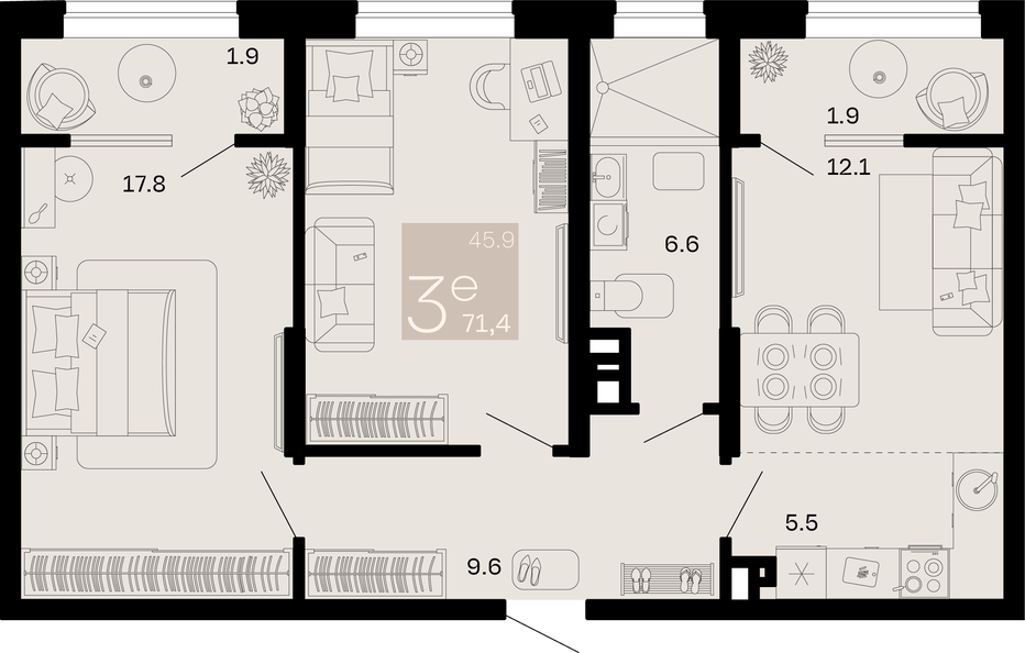 Также в шаговой доступности: медицинский центр, спортивные и воркаут‑зоны, музыкальная школа, фитнес‑клуб и даже университет — всё для полноценной жизни без необходимости ехать в центр города.