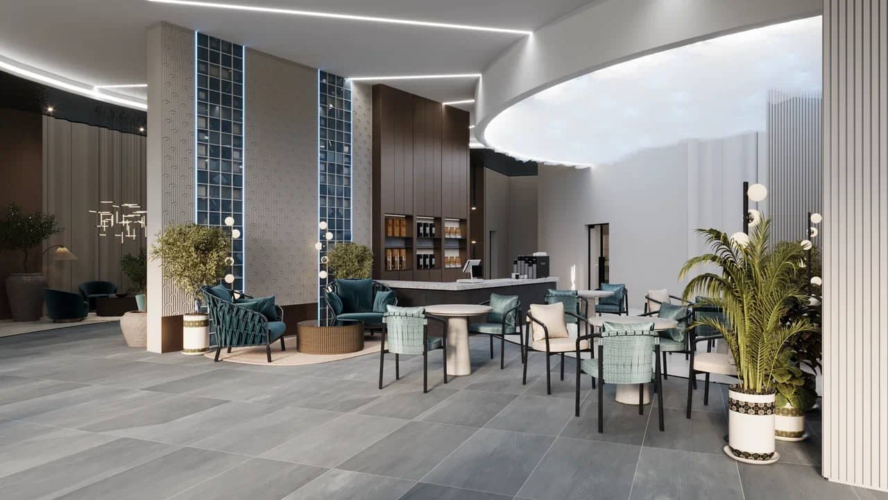 - Огромный бассейн 2 773 м² с водными горками и лаунж-зонами